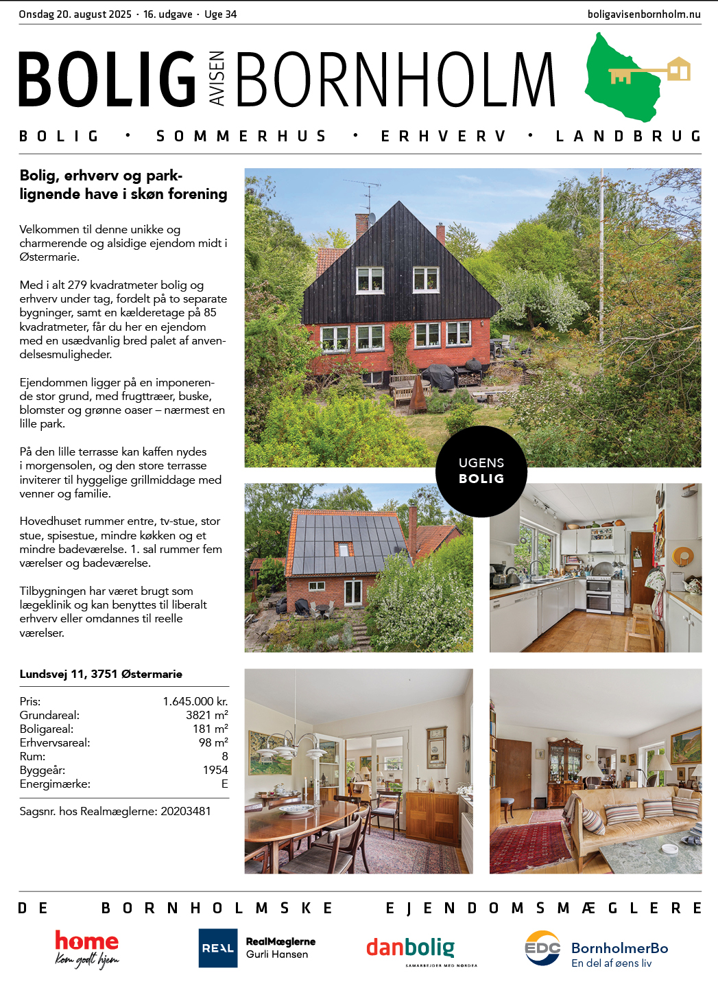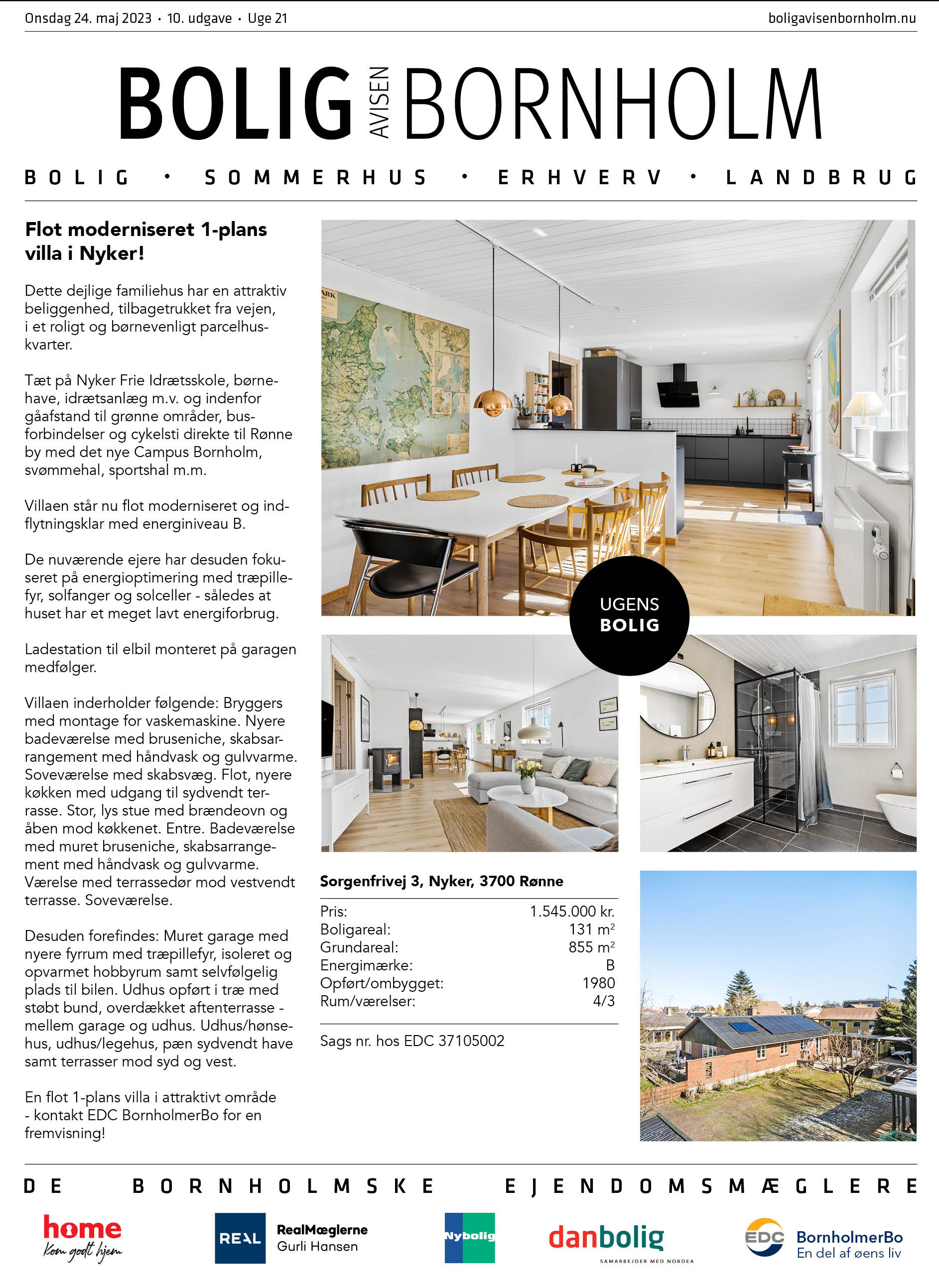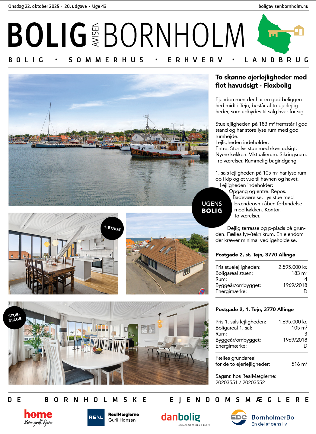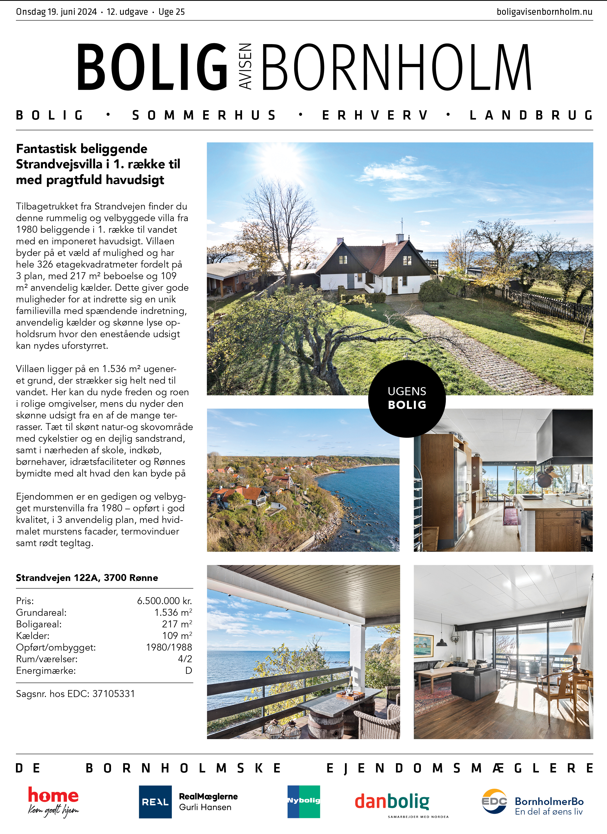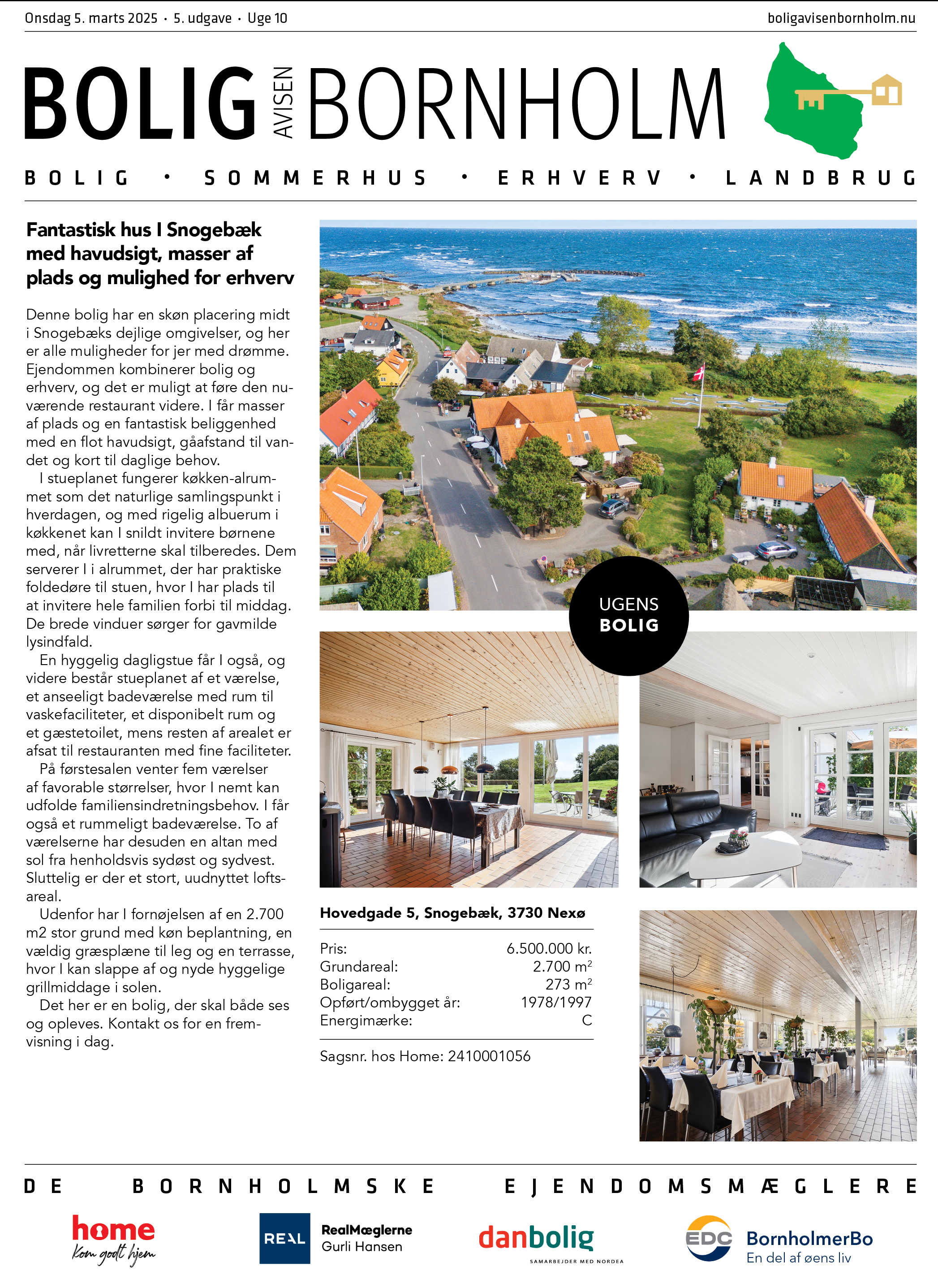 Boligavisen Bornholm er Bornholms førende avis med et stort udbud af boliger til salg indenfor Privat – Sommerhus – Erhverv og landbrug. Annoncørerne arbejder professionelt og målrettet med at formidle og forene sælger med køber. Boligavisen Bornholm udkommer hver anden uge på hele Bornholm.