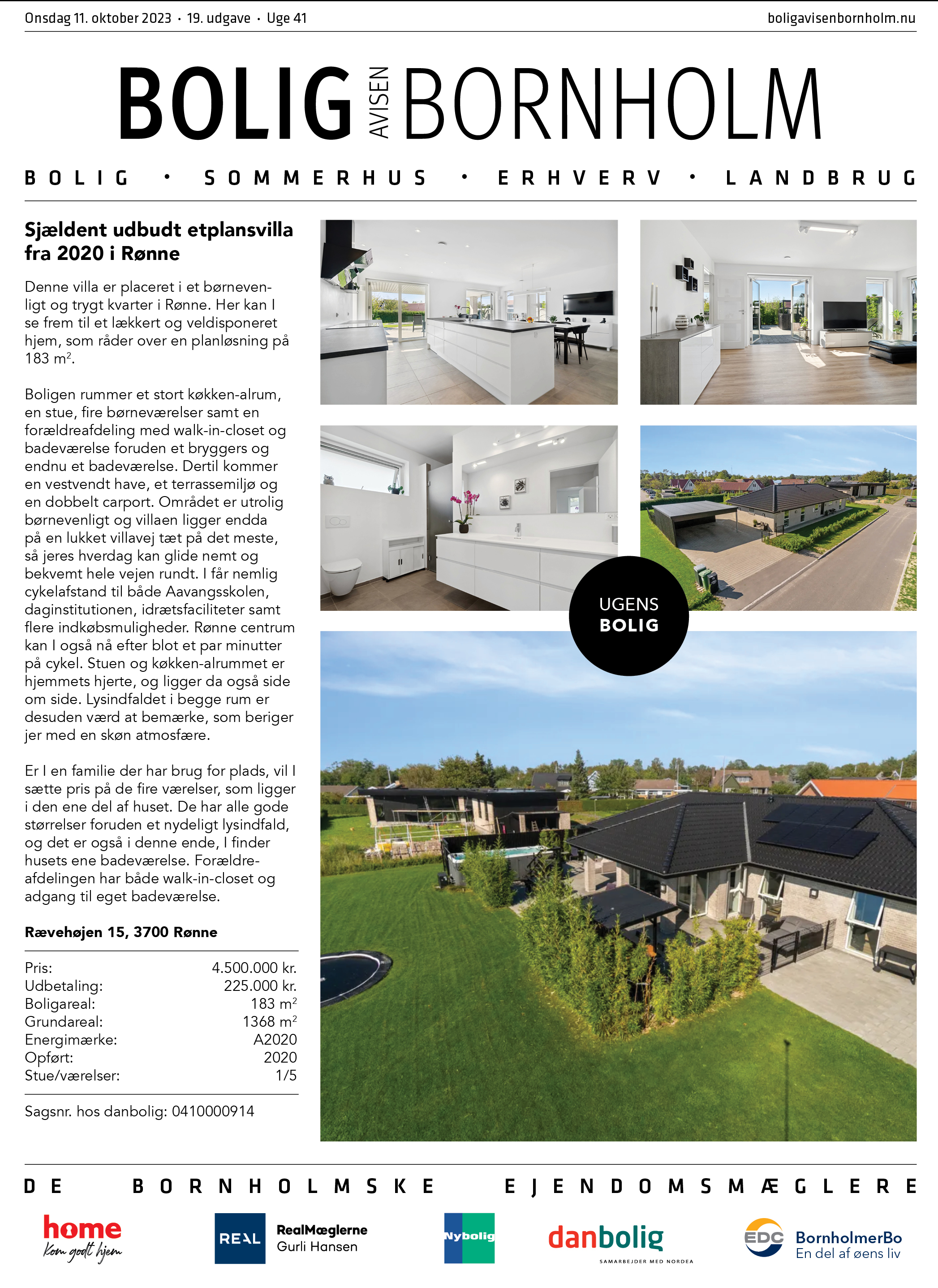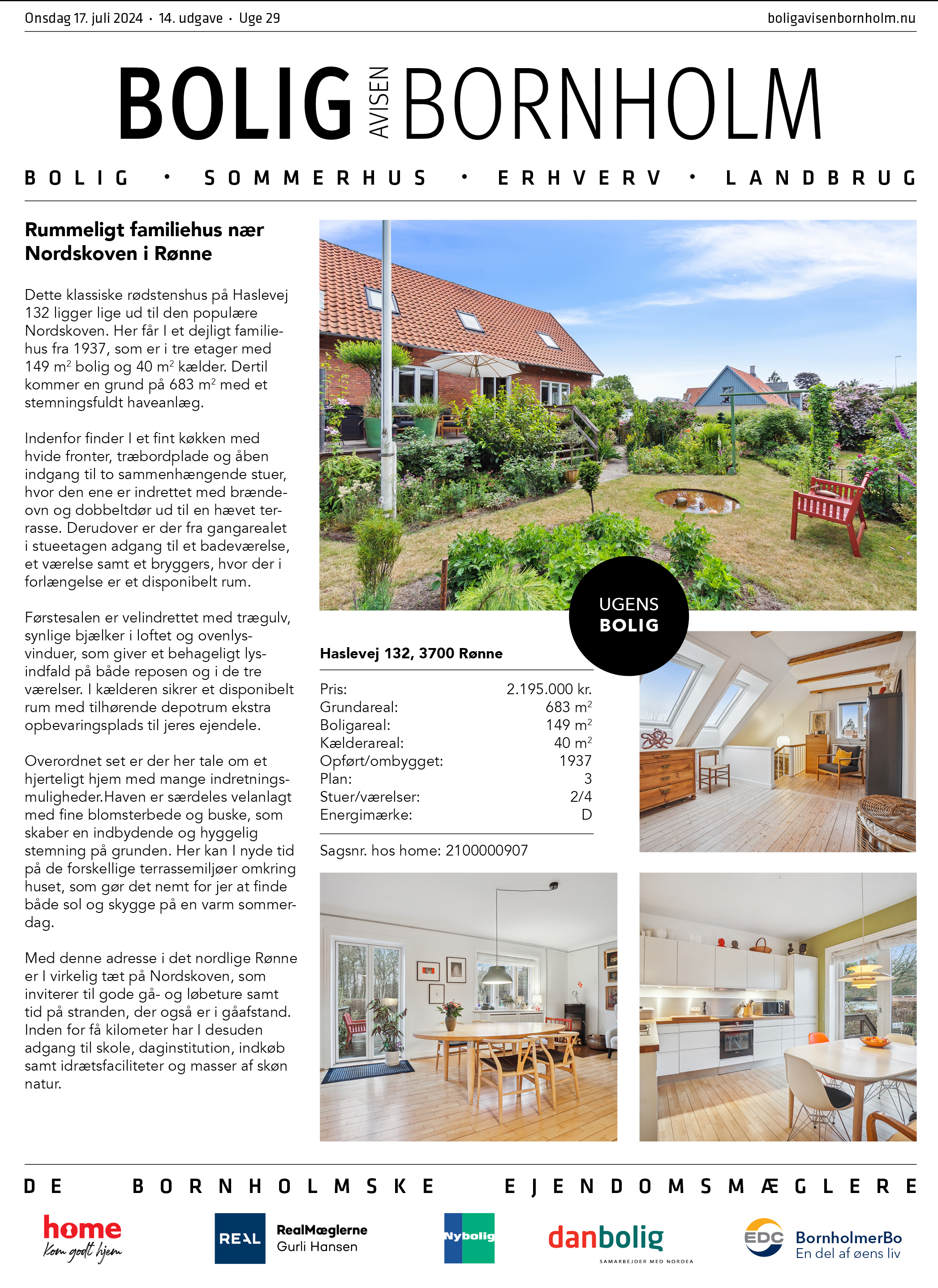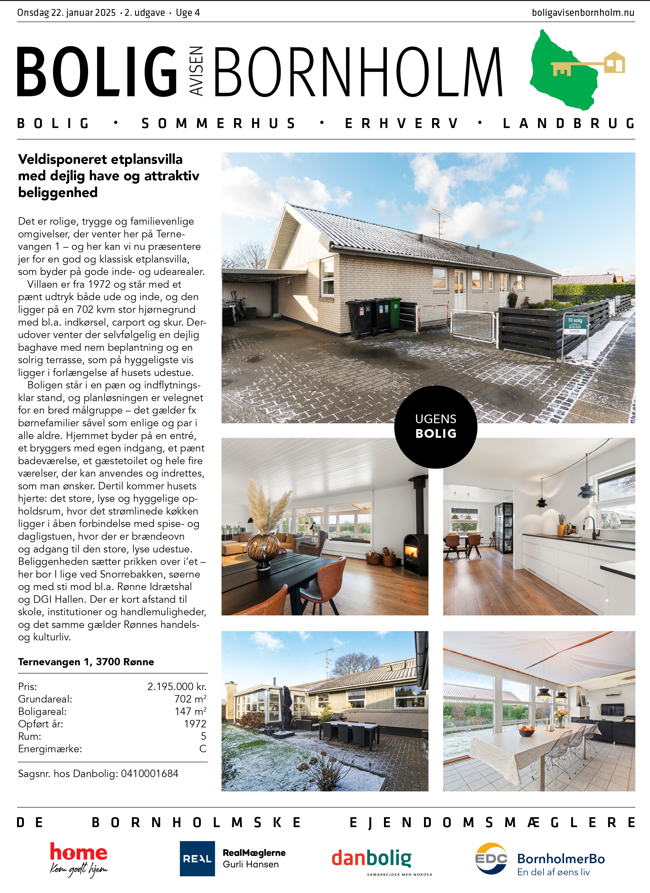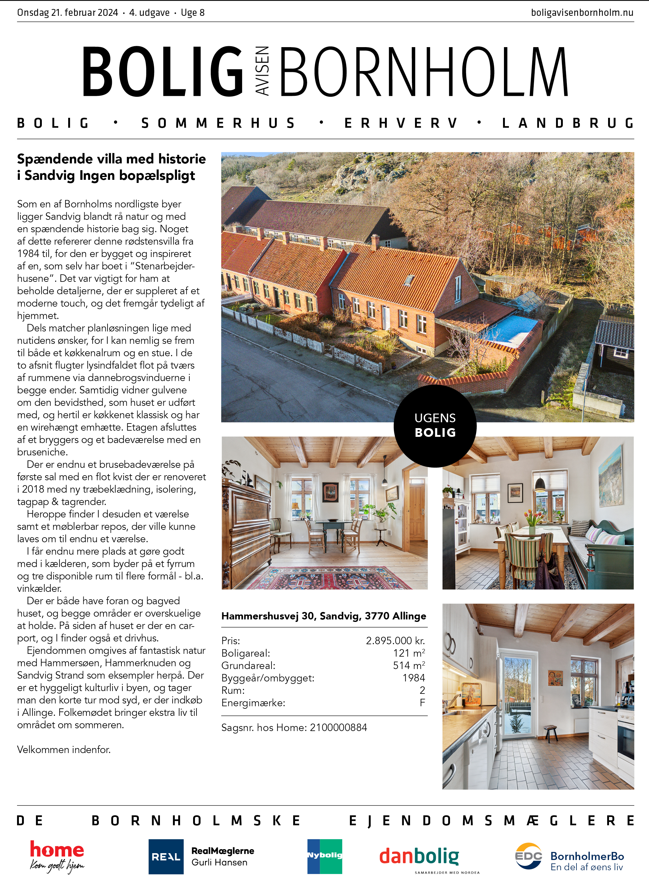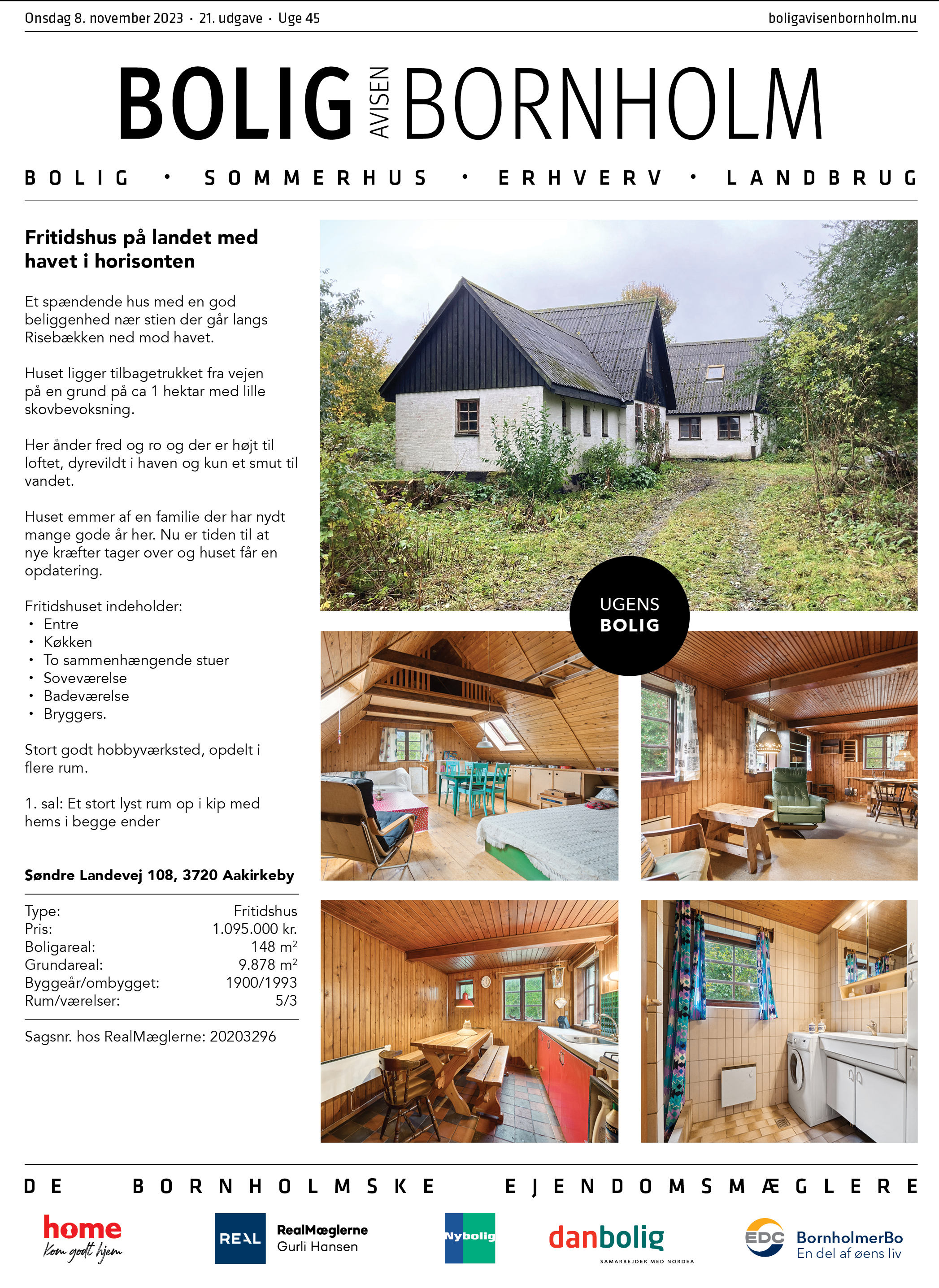 Boligavisen Bornholm er Bornholms førende avis med et stort udbud af boliger til salg indenfor Privat – Sommerhus – Erhverv og landbrug. Annoncørerne arbejder professionelt og målrettet med at formidle og forene sælger med køber. Boligavisen Bornholm udkommer hver anden uge på hele Bornholm.