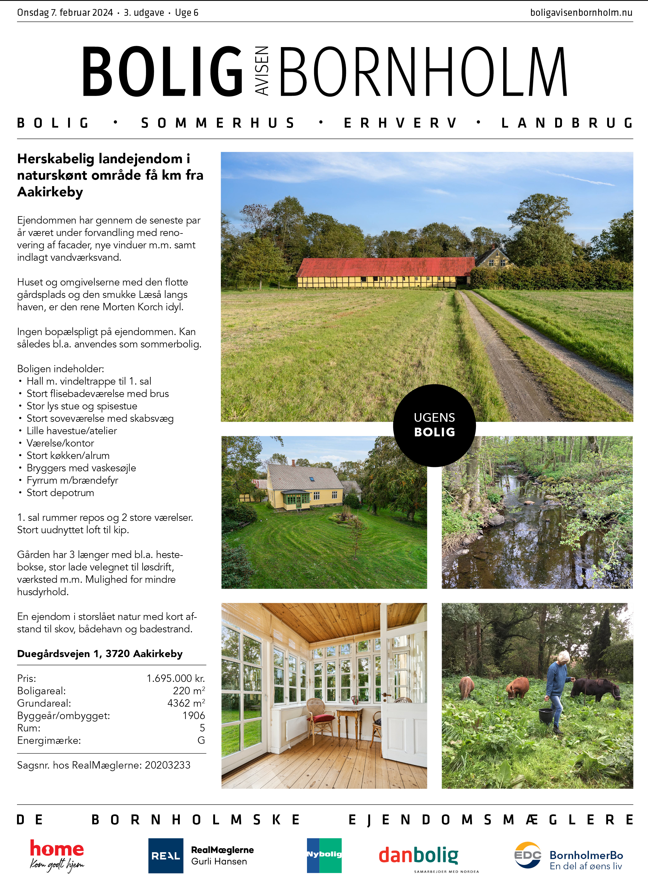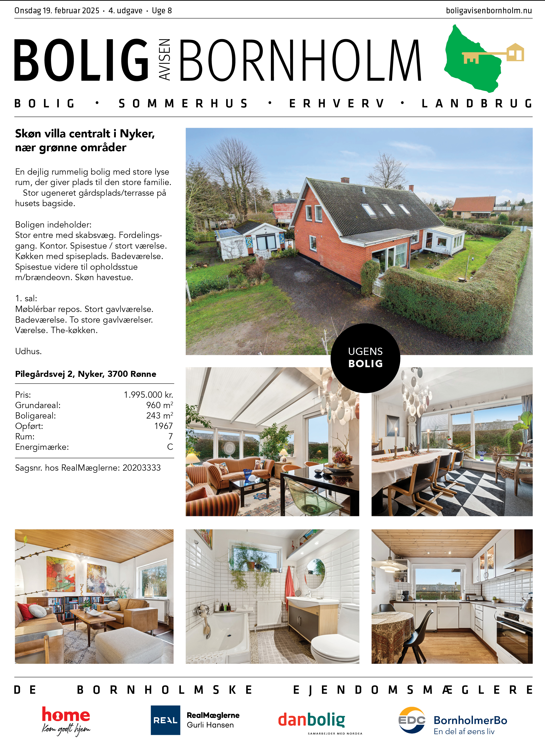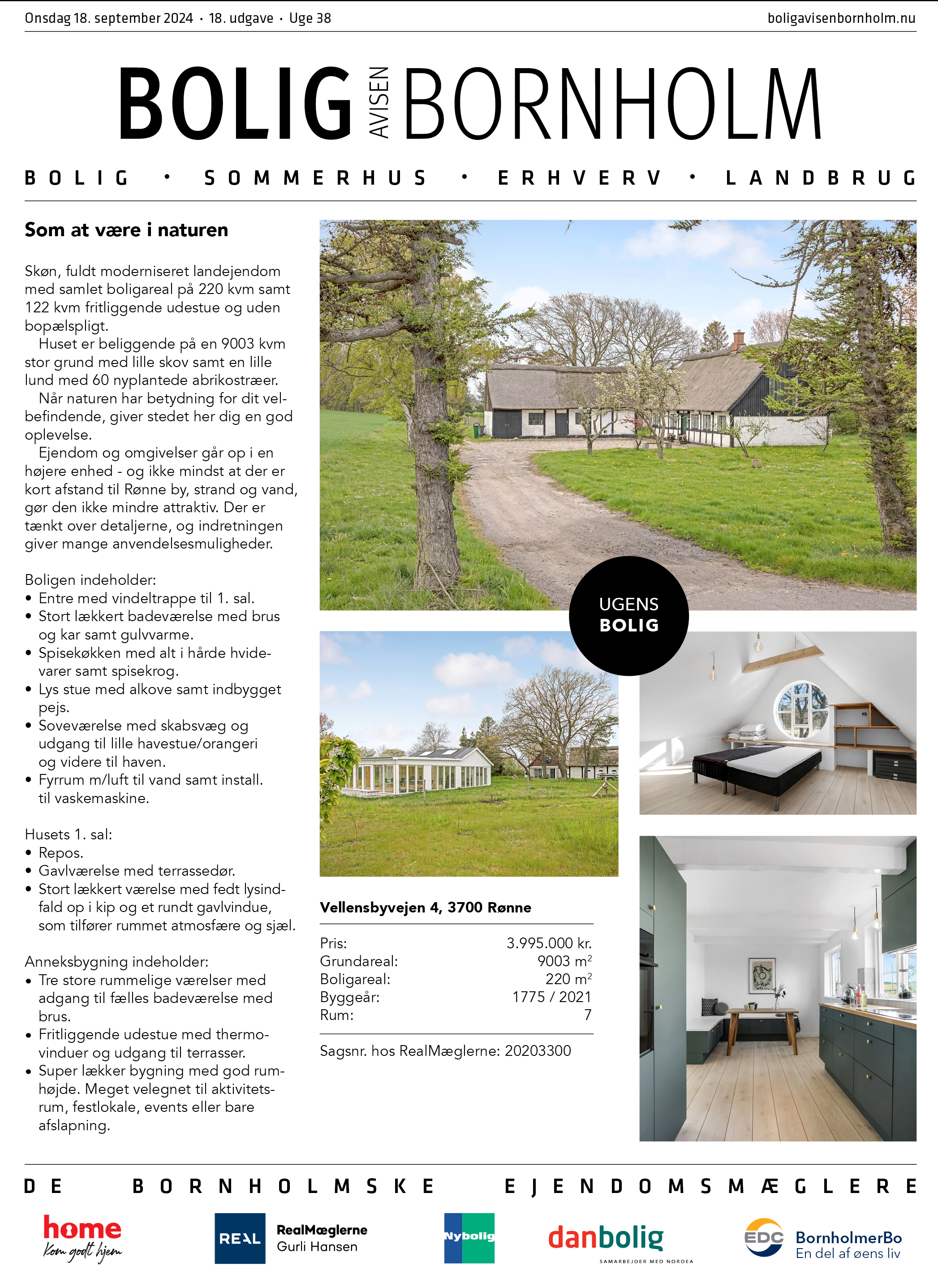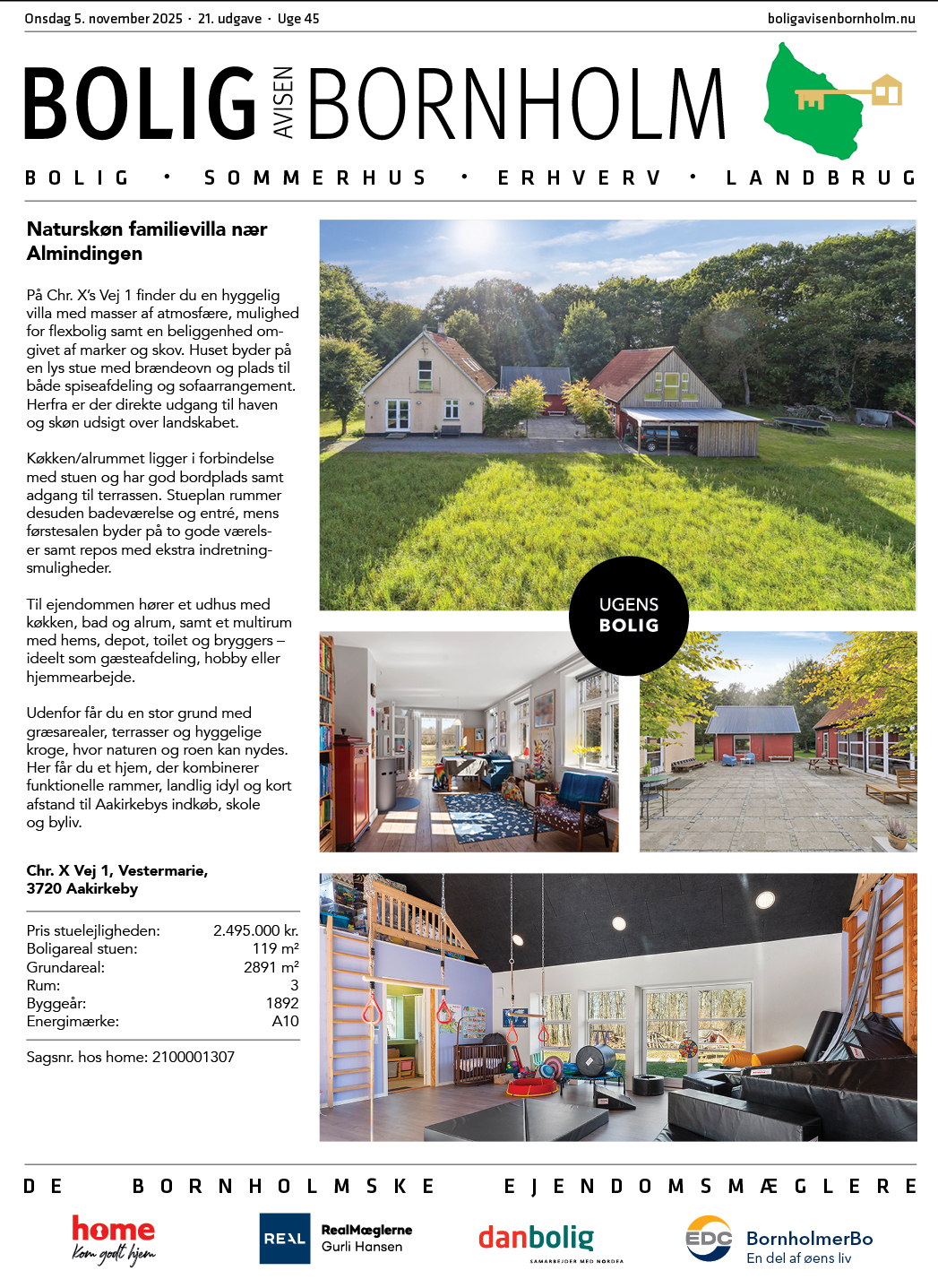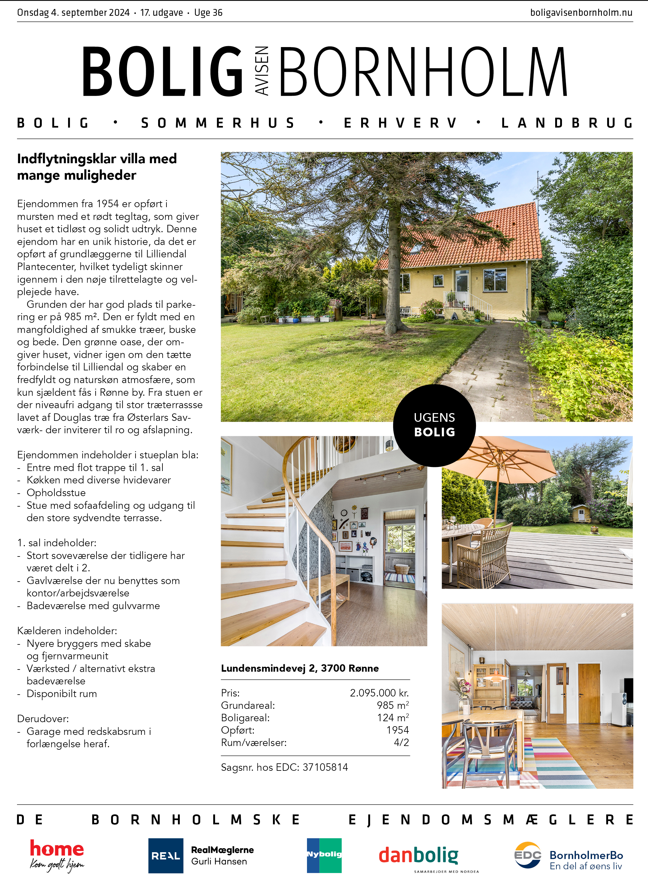 Boligavisen Bornholm er Bornholms førende avis med et stort udbud af boliger til salg indenfor Privat – Sommerhus – Erhverv og landbrug. Annoncørerne arbejder professionelt og målrettet med at formidle og forene sælger med køber. Boligavisen Bornholm udkommer hver anden uge på hele Bornholm.