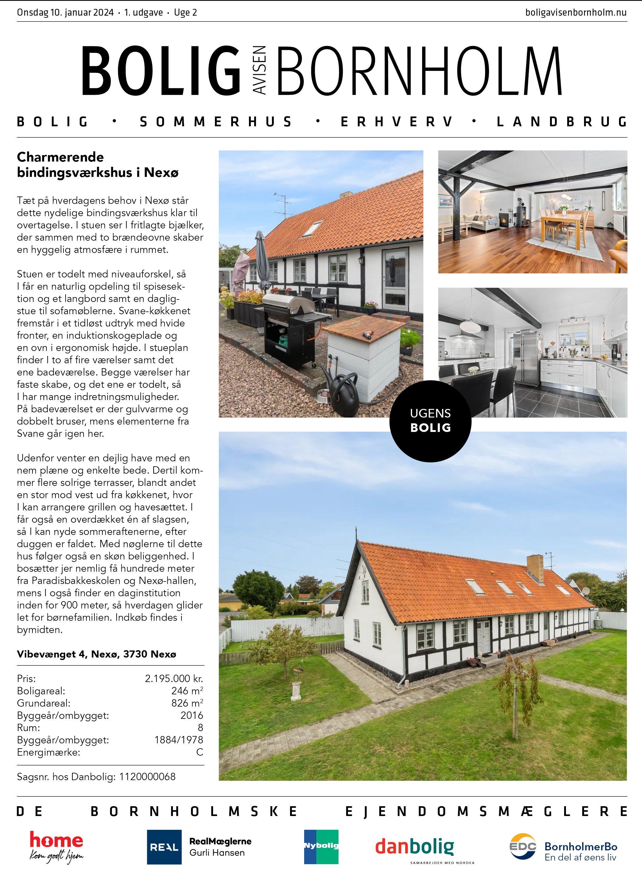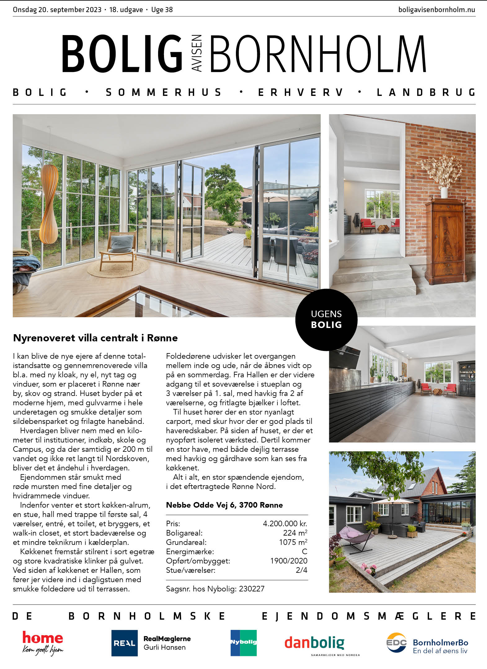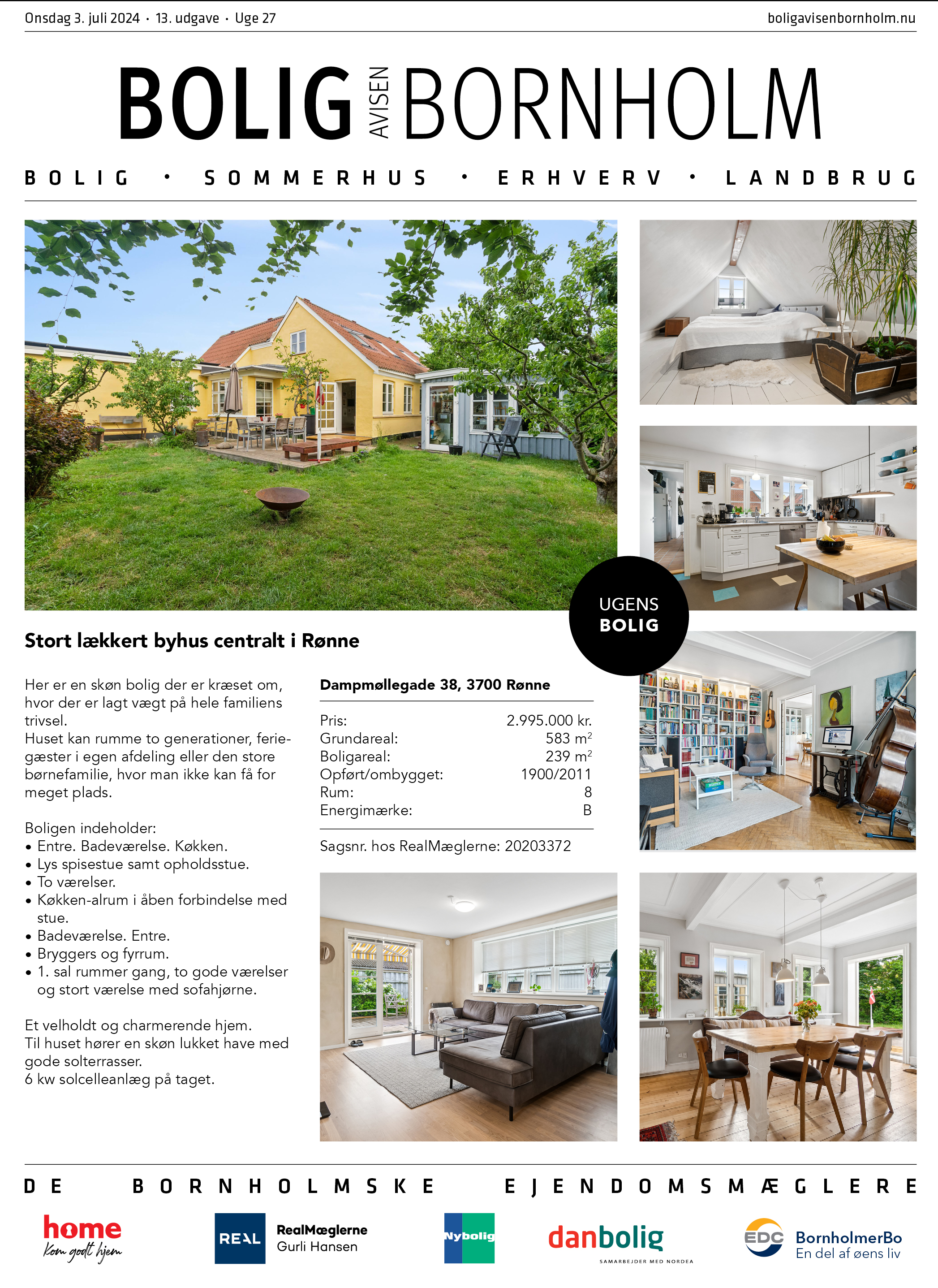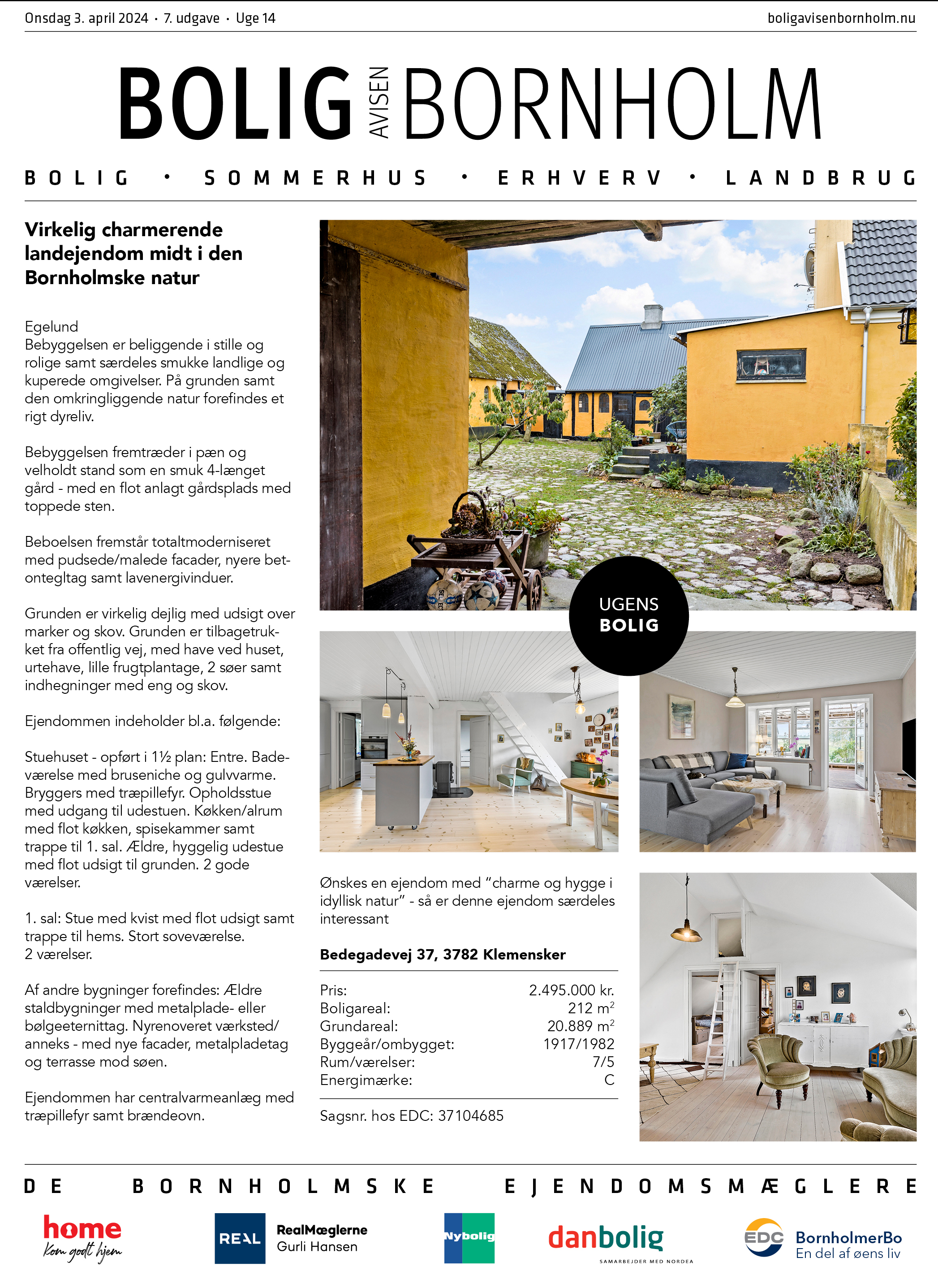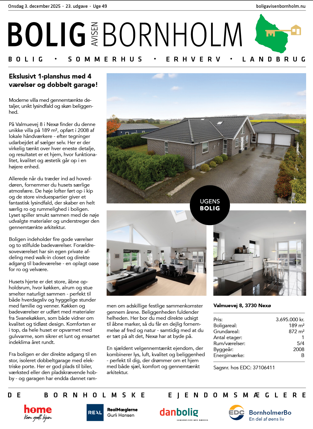 Boligavisen Bornholm er Bornholms førende avis med et stort udbud af boliger til salg indenfor Privat – Sommerhus – Erhverv og landbrug. Annoncørerne arbejder professionelt og målrettet med at formidle og forene sælger med køber. Boligavisen Bornholm udkommer hver anden uge på hele Bornholm.