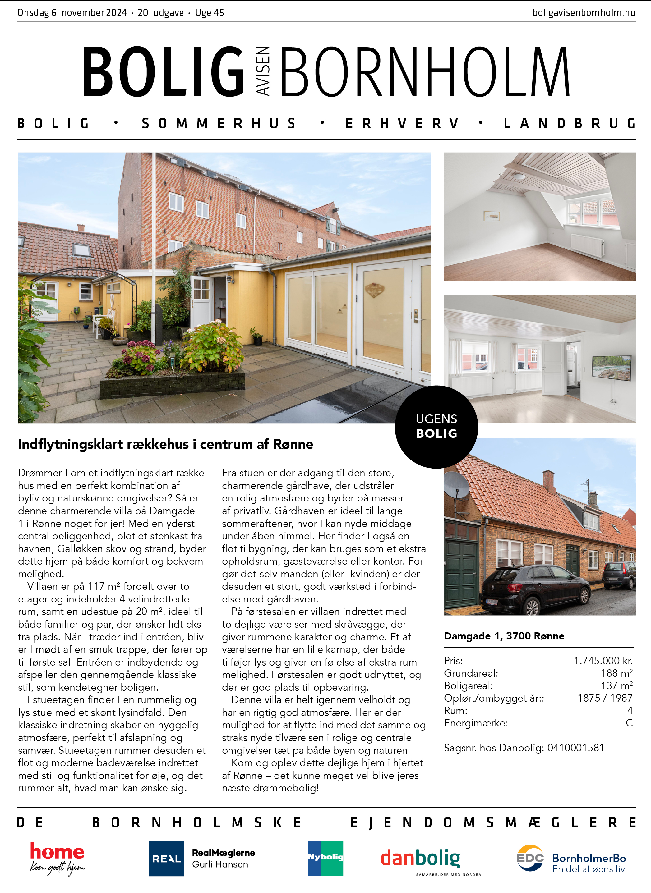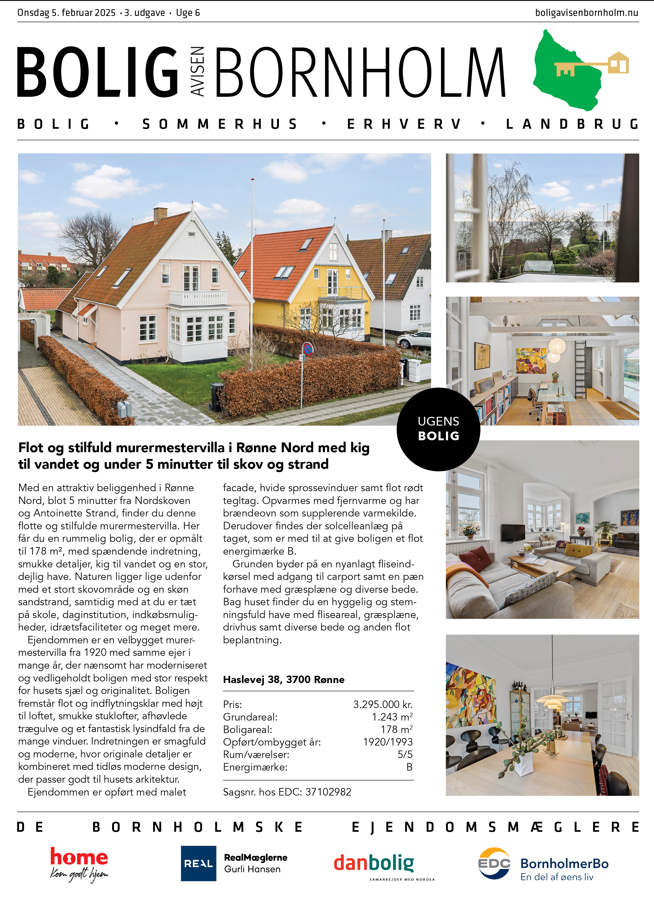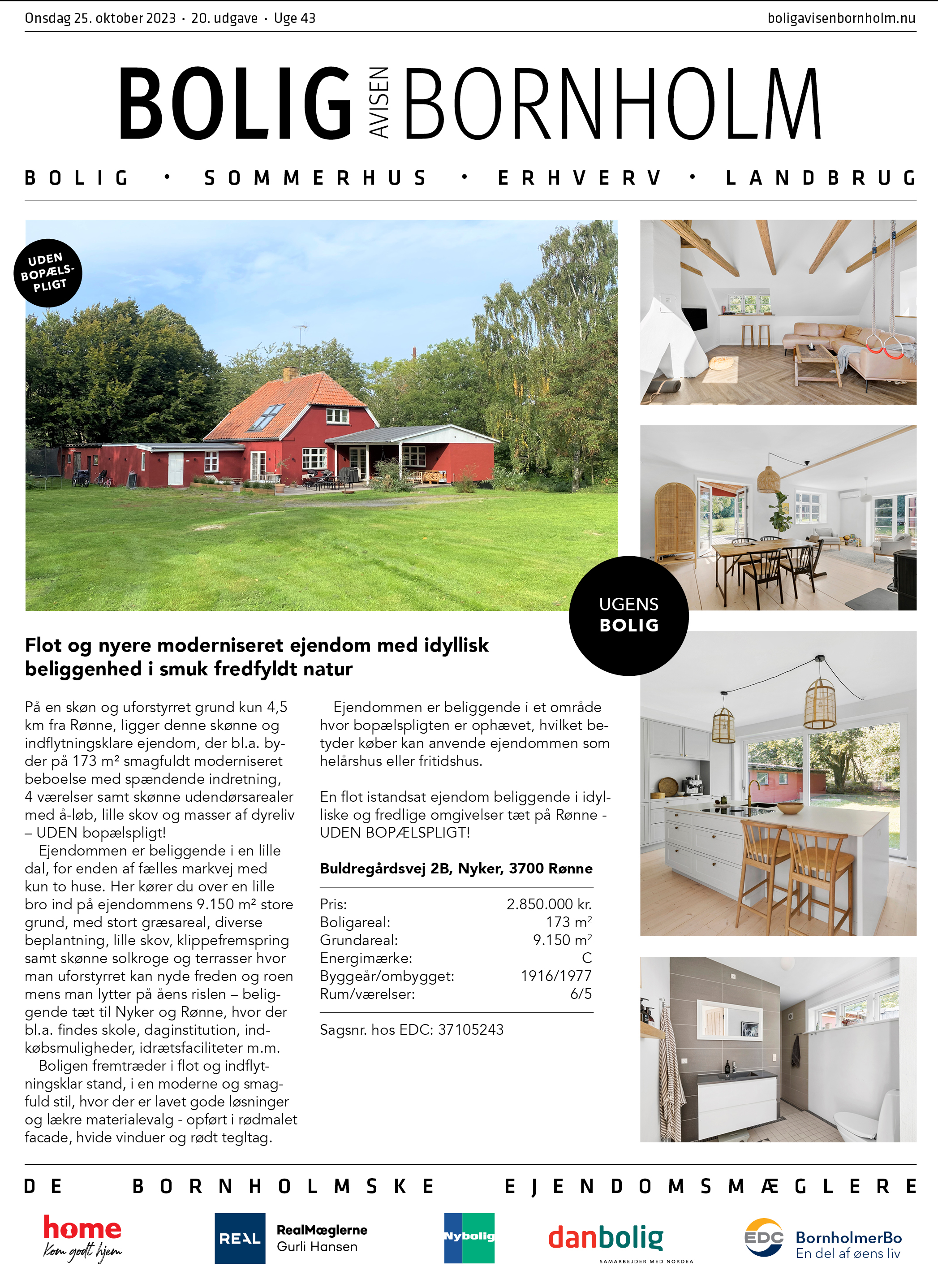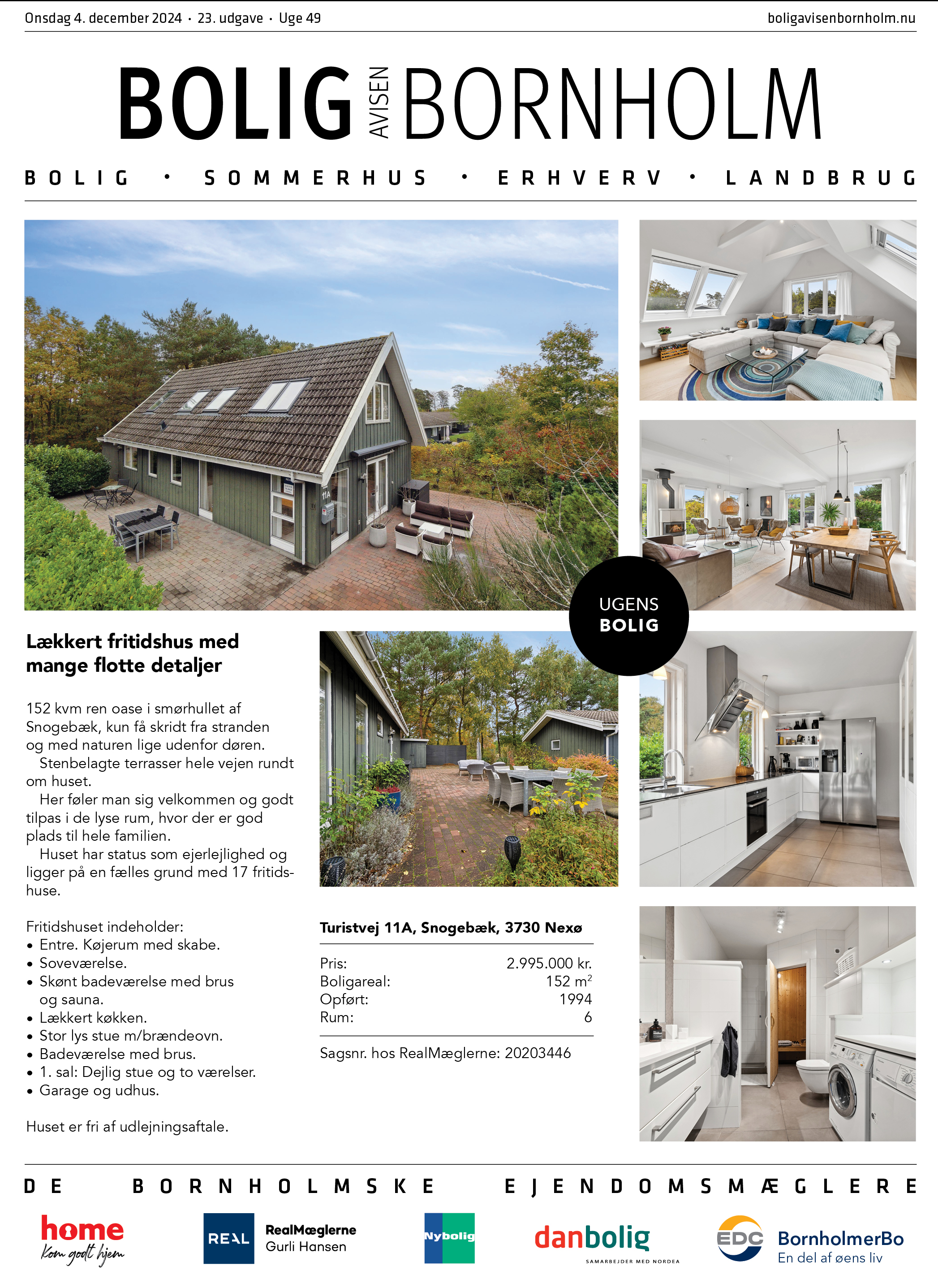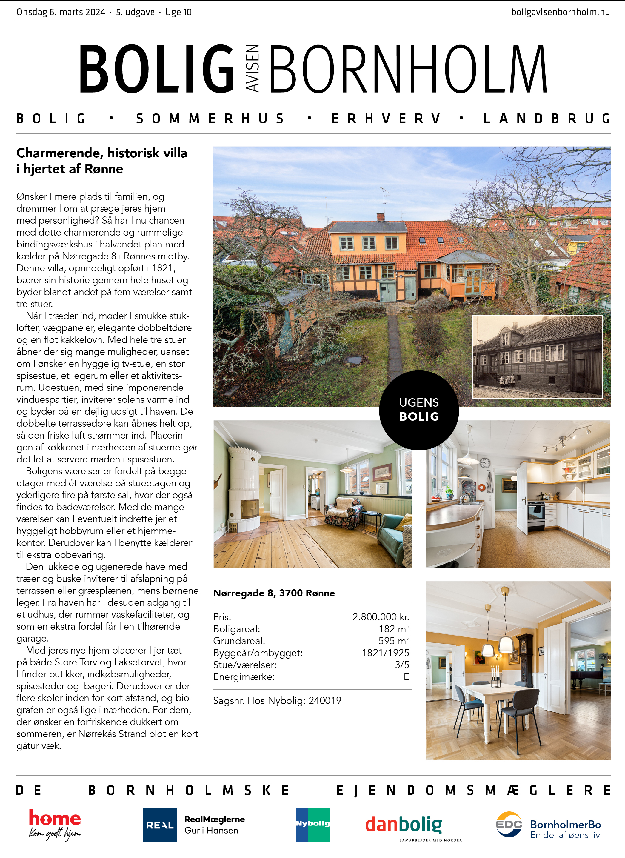 Boligavisen Bornholm er Bornholms førende avis med et stort udbud af boliger til salg indenfor Privat – Sommerhus – Erhverv og landbrug. Annoncørerne arbejder professionelt og målrettet med at formidle og forene sælger med køber. Boligavisen Bornholm udkommer hver anden uge på hele Bornholm.